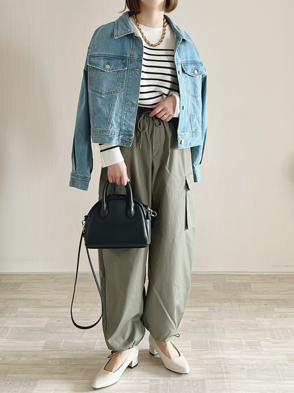 ボーダーニット カーゴパンツにも可愛いです♡ ニット/38 Gジャン/XL パンツ/S シューズ/S Instagram/yoahiru.w