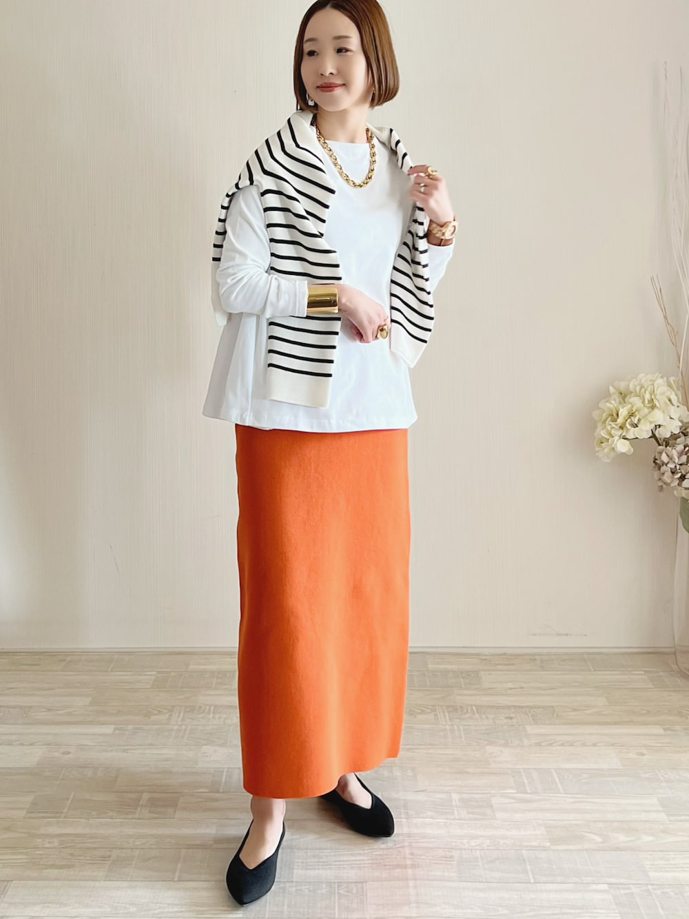 陽のTシャツ/カットソー「裾フレアロンT」を使ったコーディネート