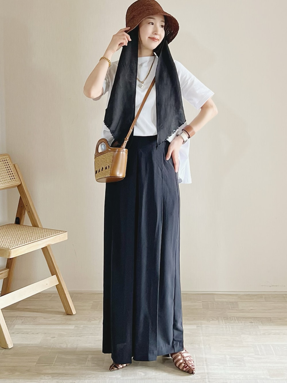 Bonjour Saganの白Tシャツ着回し𖧷 シンプルコーデにハットでアクセントを✨ Tシャツ/FREE パンツ/1 シューズ/XS Instagram/yoahiru.w