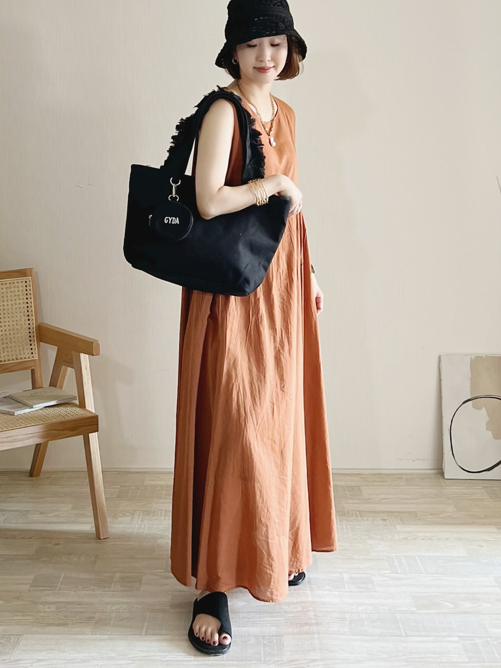 陽のワンピース「バックリボンギャザーワンピース」を使ったコーディネート