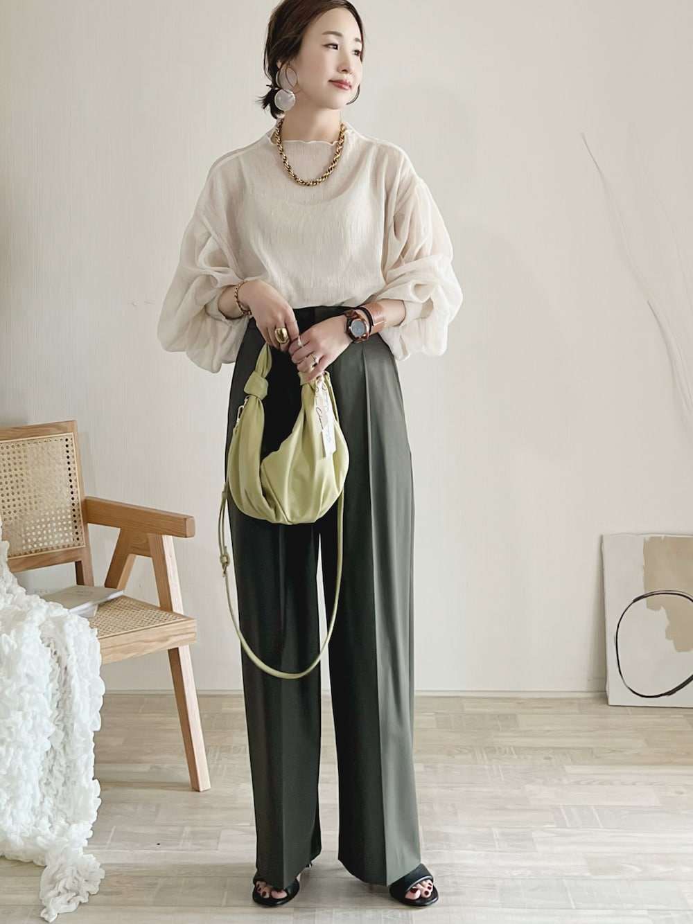 陽のシャツ/ブラウス「楊柳シフォンパフスリーブブラウス」を使ったコーディネート