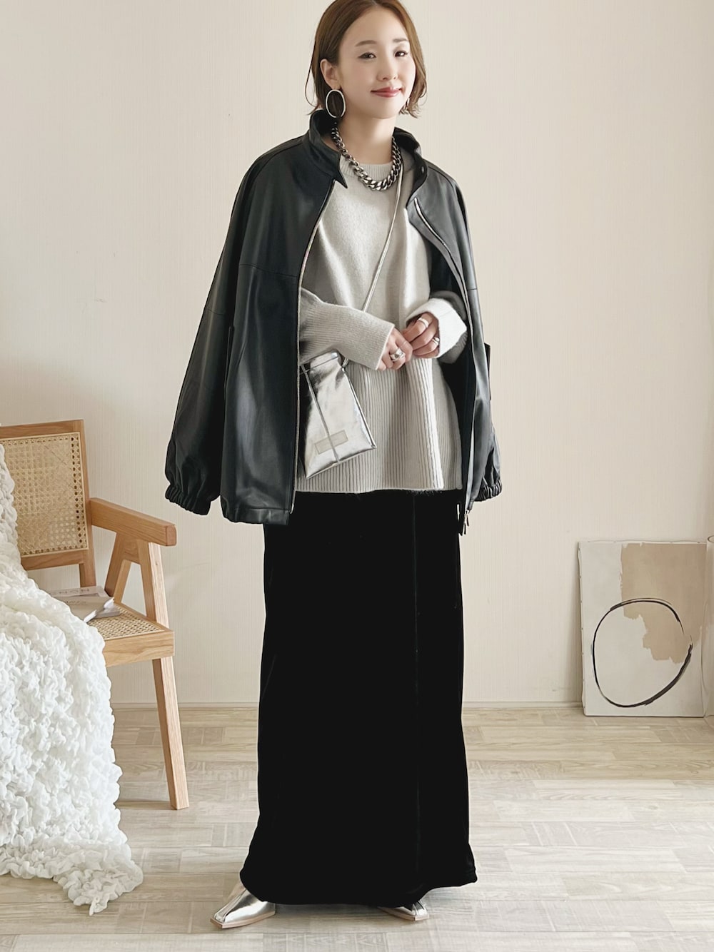 陽のブルゾン「レザーバラクーダブルゾン」を使ったコーディネート