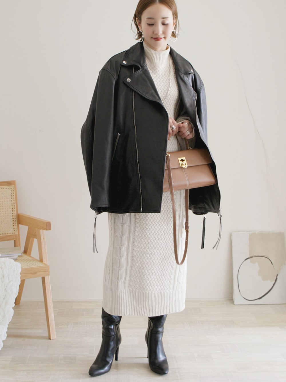 MAISON SPECIALのレザーライダース 本当に本当にお気に入り✨ ジャケット/38 ワンピース/M シューズ/22.5 Instagram / yoahiru.w 156cm/ブルベ夏/骨格ナチュラル×ストレートmix
