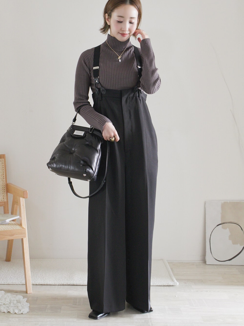 ITEMS URBAN RESEARCHのモチモチリブニットが心地よすぎます♡ ぴたぴたしすぎない程よいフィット感で 主役としてもレイヤードコーデにも 活躍してくれます✨ ニット/FREE サロペット/S シューズ/S Instagram / yoahiru.w 156cm/ブルベ夏/骨格ナチュラル×ストレートmix