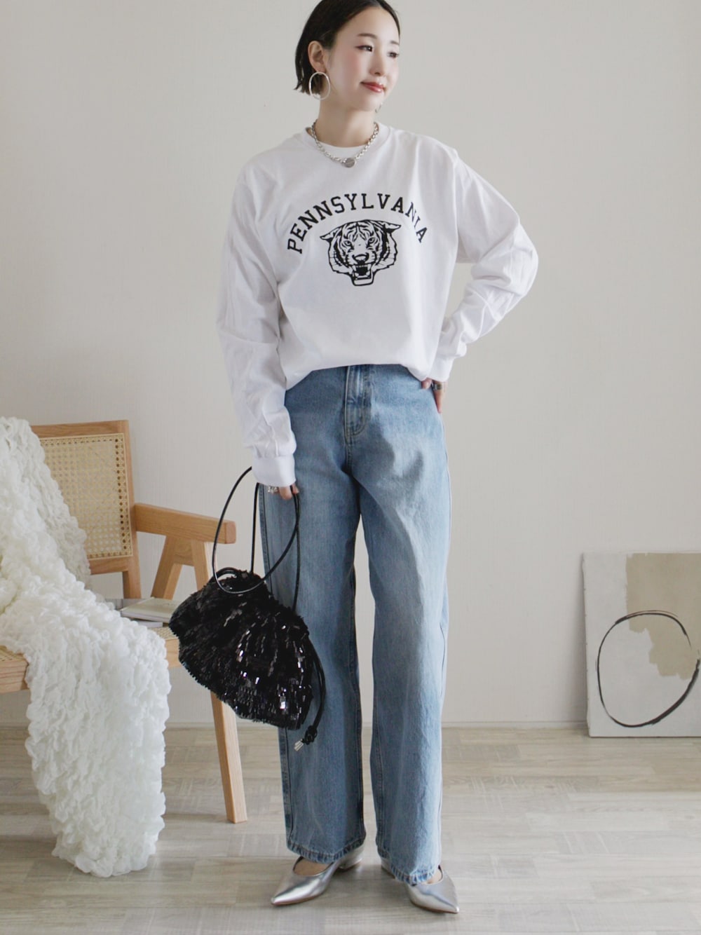 ANGIEのロゴTが可愛すぎます♡ タイガーロゴ一番お気に入り♡ ロンT/M デニム/S シューズ/22.5 Instagram / yoahiru.w 156cm/ブルベ夏/骨格ナチュラル×ストレートmix