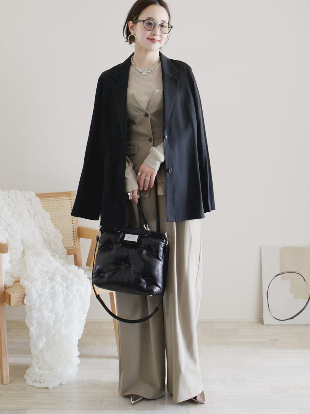 最近はビスチェがすっごく好き✨ セットアップもお気に入り✨ ジャケット/38 インナー/FREE ビスチェ/FREE パンツ/36 シューズ/35 Instagram / yoahiru.w 156cm/ブルベ夏/骨格ナチュラル×ストレートmix