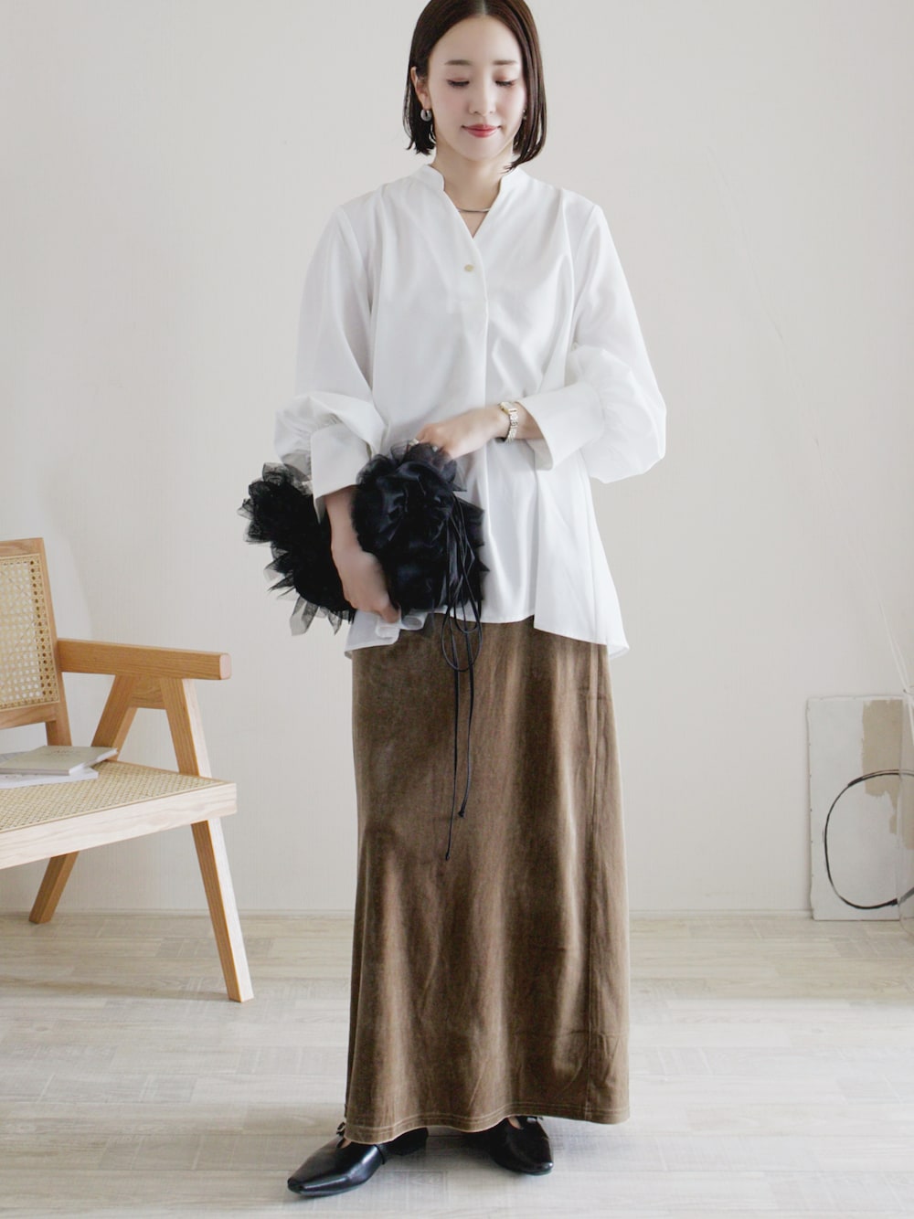 ブラウスにベロアスカート✨ ブラウス/38 スカート/FREE シューズ/22 Instagram / yoahiru.w 156cm/ブルベ夏/骨格ナチュラル×ストレートmix