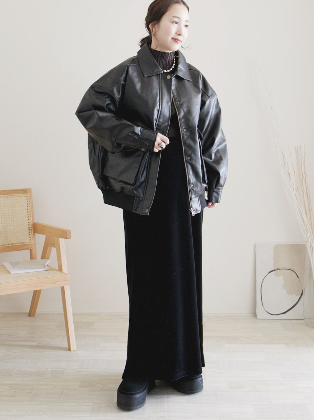 レザージャケットでブラックコーデ✨ ジャケット/L スカート/M シューズ/23 Instagram / yoahiru.w 156cm/ブルベ夏/骨格ナチュラル×ストレートmix