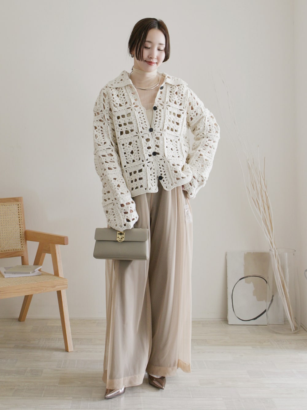 陽のTシャツ/カットソー「Crochet Knit Shirts」を使ったコーディネート
