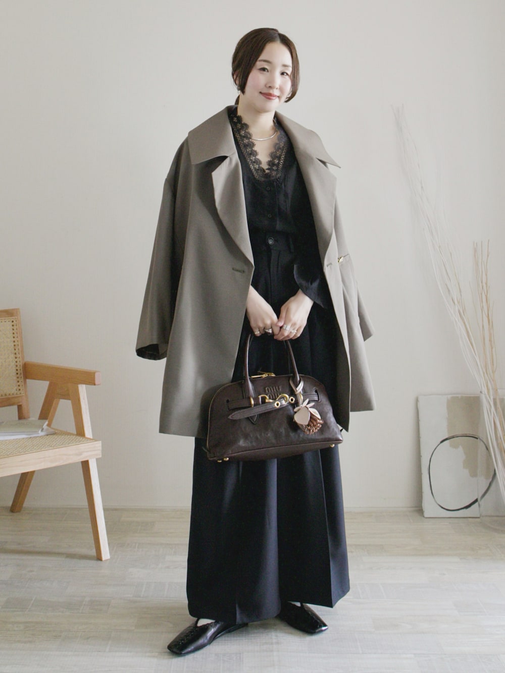 陽のその他アウター「バックサテン ワイドカラーコート」を使ったコーディネート