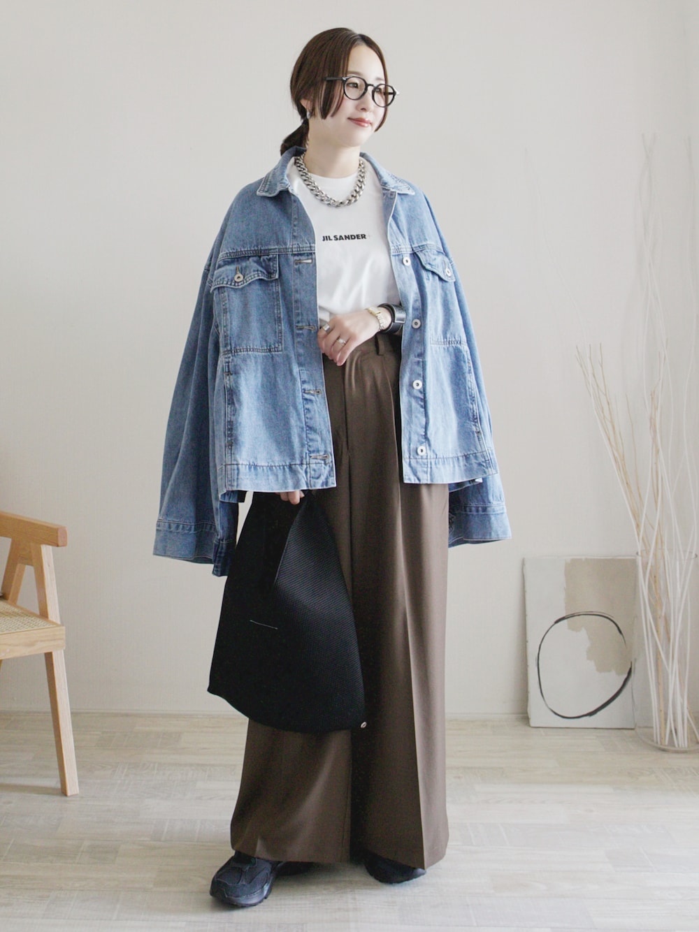 陽のデニムジャケット「スーパーワイドスリーブデニムジャケット」を使ったコーディネート