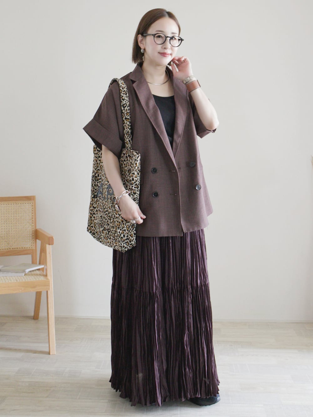 Discoatのジャケットお気に入りでブラウンも購入しました♡ ジャケット/FREE スカート/FREE シューズ/23 Instagram / yoahiru.w 156cm/ブルベ夏/骨格ナチュラル×ストレートmix