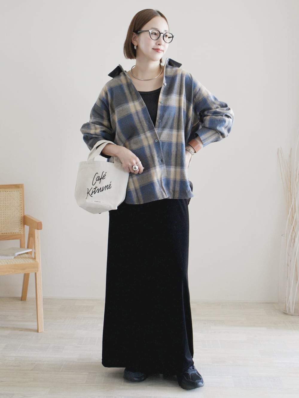 チェックシャツが可愛すぎる♡ シャツ/FREE スカート/FREE シューズ/23 Instagram / yoahiru.w 156cm/ブルベ夏/骨格ナチュラル×ストレートmix