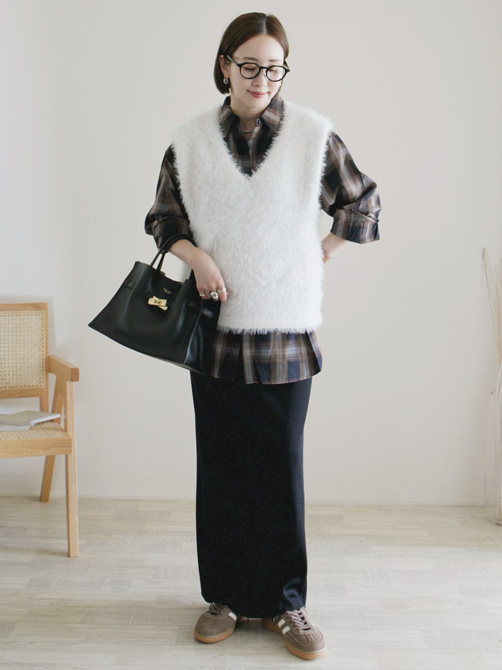 ふわふわベストはシャツと重ねるのも◎✨ シャツ/L ベスト/M スカート/FREE シューズ/23 Instagram / yoahiru.w 156cm/ブルベ夏/骨格ナチュラル×ストレートmix