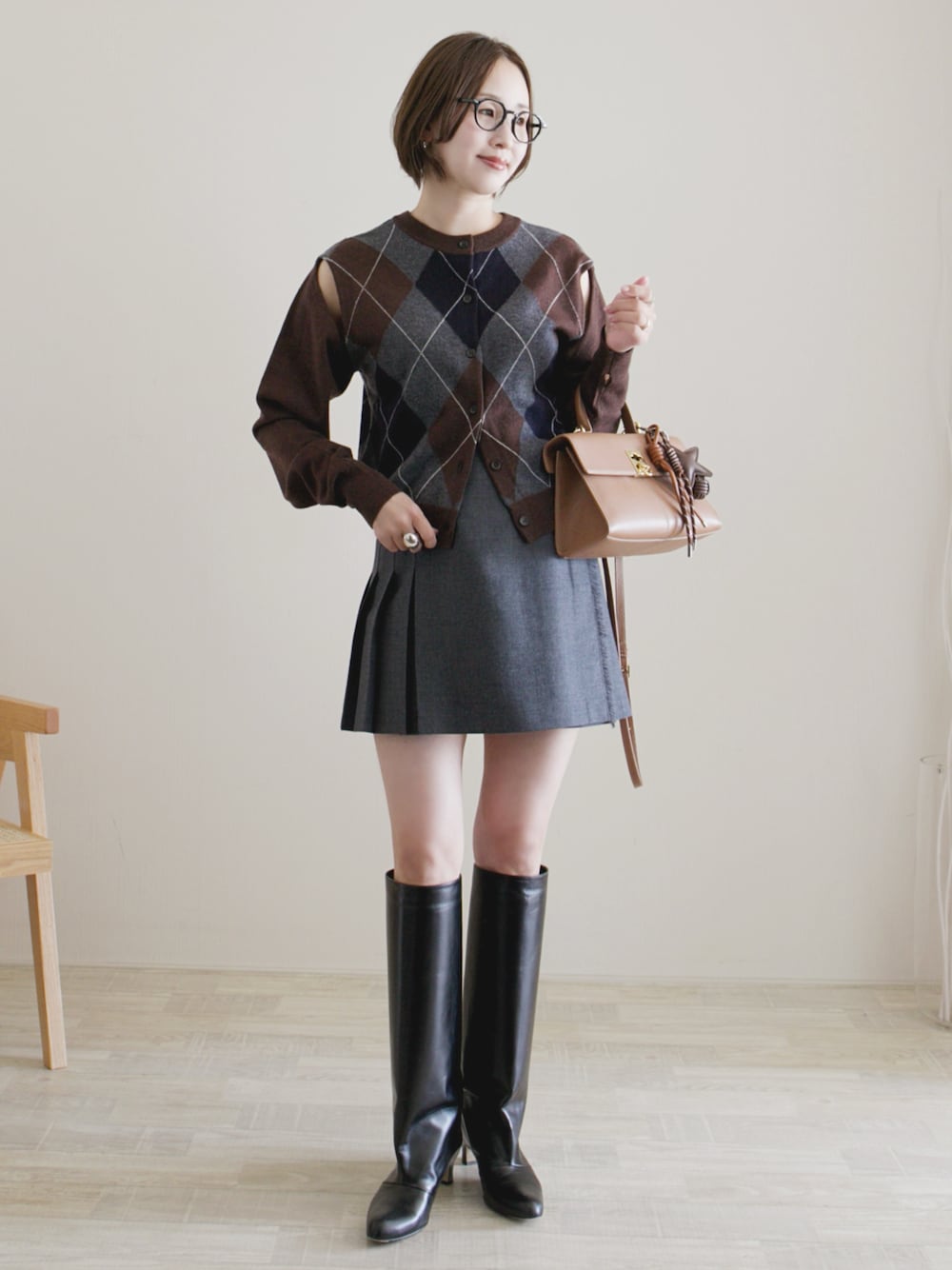 コンパクトなカーデにミニスカートはまってます𖧷 カーデ/1 スカート/8 シューズ/36 Instagram / yoahiru.w 156cm/ブルベ夏/骨格ナチュラル×ストレートmix
