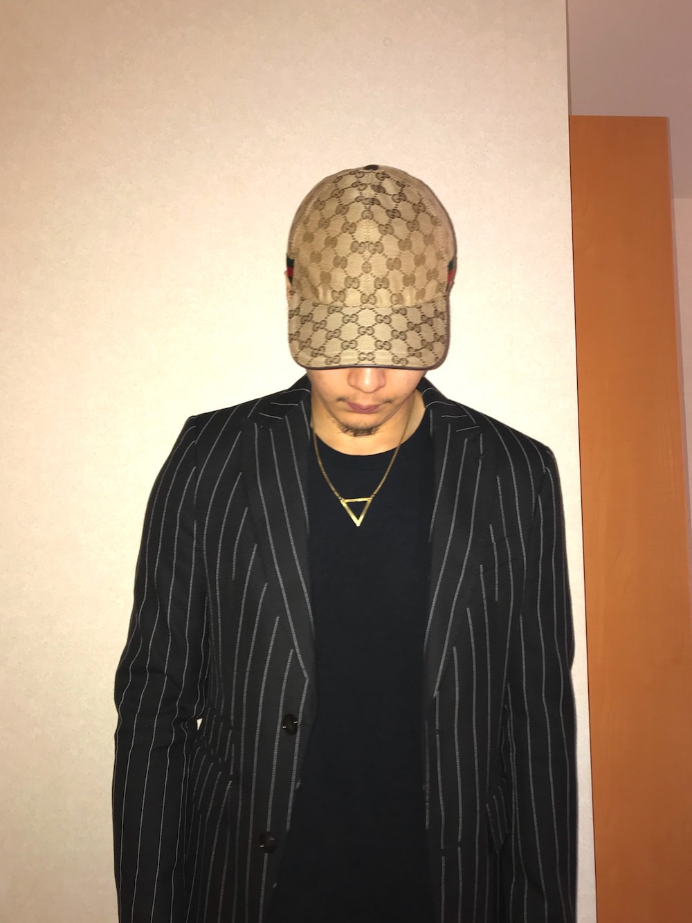 このコーディネートにはGUCCIのキャップは使いませんが顔を隠すために使ってます!笑