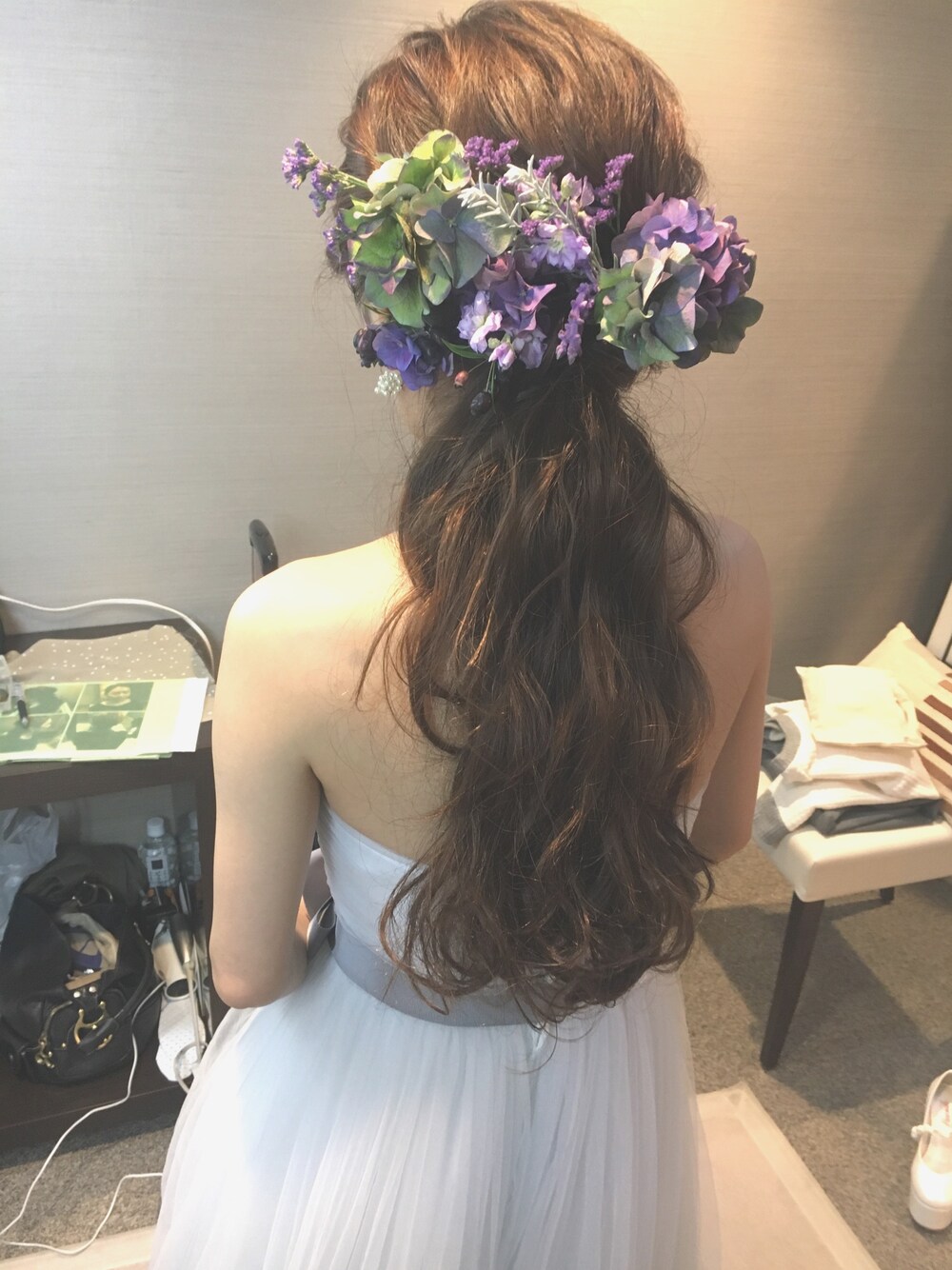 ロングスタイルのロ-ポニー dress:ポエティカ flower:ユ-レット hairmake: @hyochi_hm