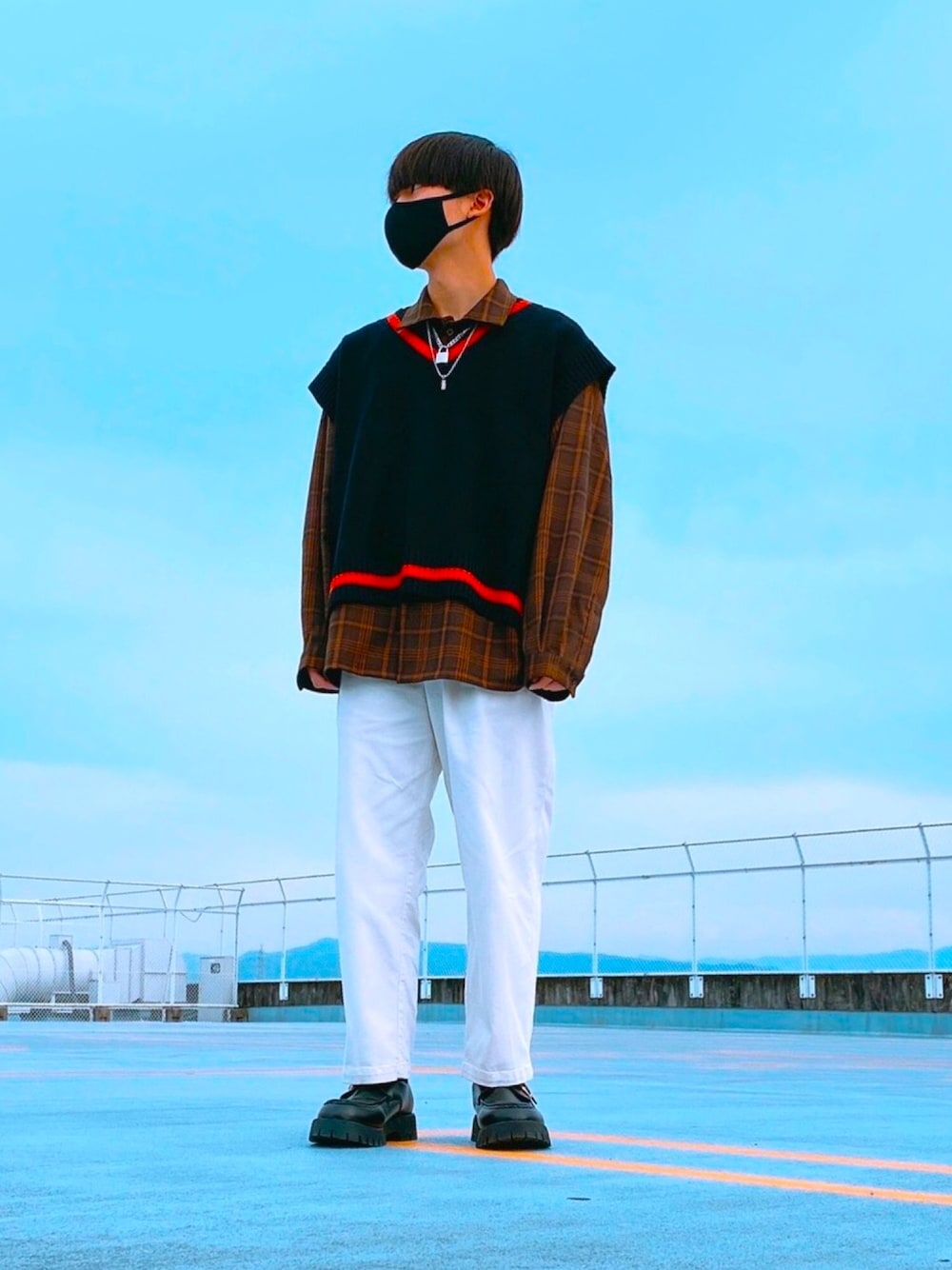 オープンカラーシャツにベストを合わせてパンツはトレンドでもある白パンツを組み合わせました!革靴との相性もとてもいいです!