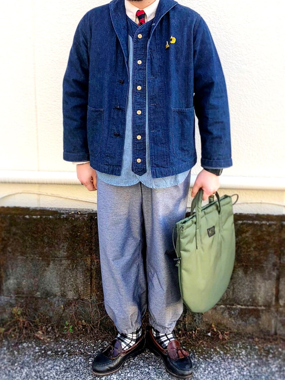 おはようございます。 今日は春のレイヤードは、 shirtにnecktie、 baseballshirtにcover all、 足元はタッセルローファー合わせました。 今日は快晴、ちょっと散歩がてらいつもより遠回りしながら、仕事に向かいます!