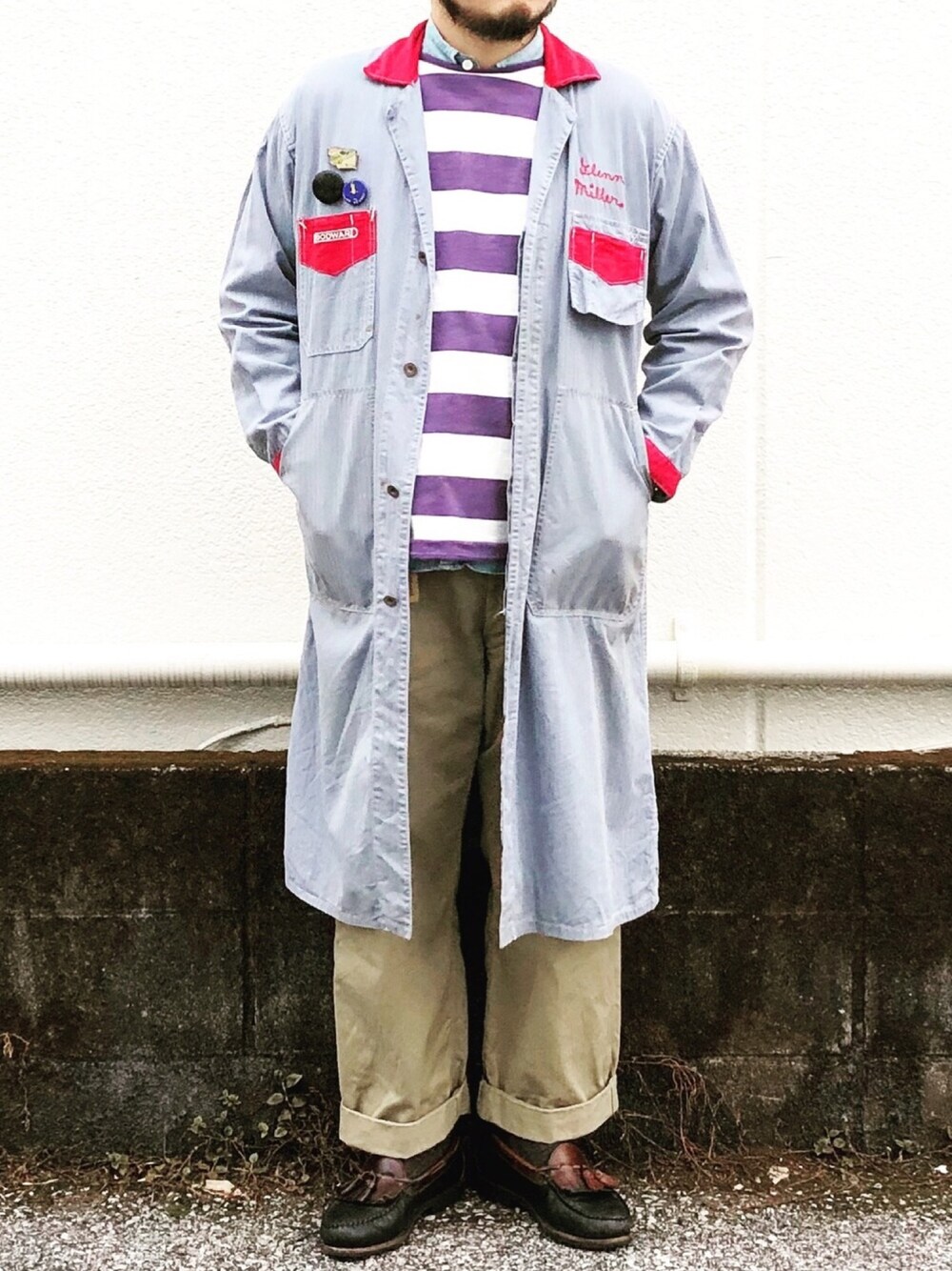 今日は古着mix このショップコート🧥お気に入り! 古着ならではの一着ですね。 さあ今週もスタート、 何にも変わりませんが、、、 出勤します〜