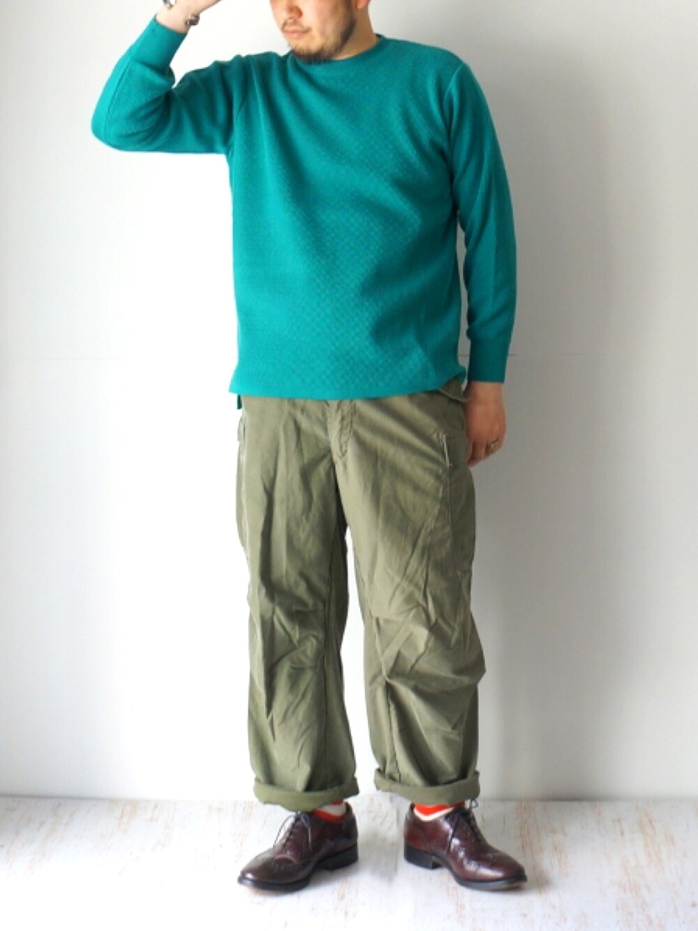 今日はワントーン cotton thermalにcargo pants 足元はchurchで!