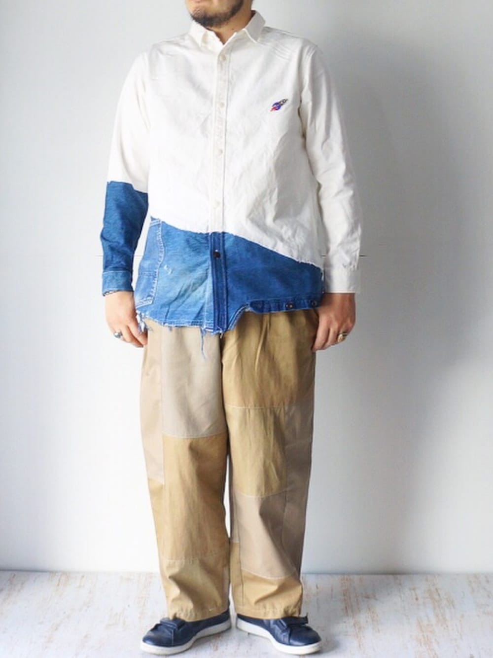 今日はvintage denimを切り替えで使用しshirtに、 Burberryのコートを解体して再構築されたwide pants ちょっと秋を意識してみました!
