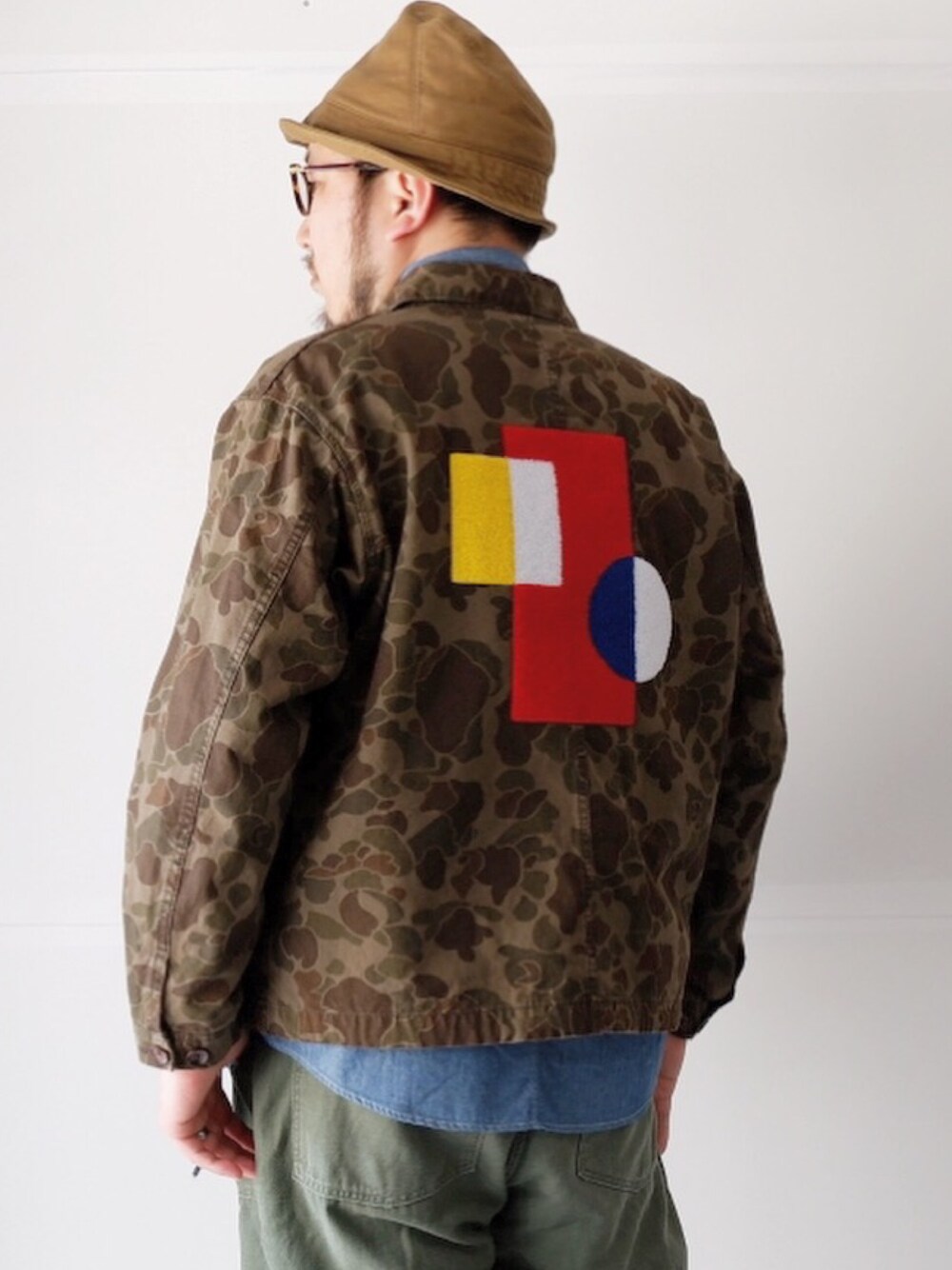 秋の羽織りものはこのジャスティスジャンパーにしました! カモ柄を草木染めし、幾何学模様を相良刺繍した一着🕺🏻 くせはありますが、私好みの一着に出会えました。 秋も楽しめそうです〜
