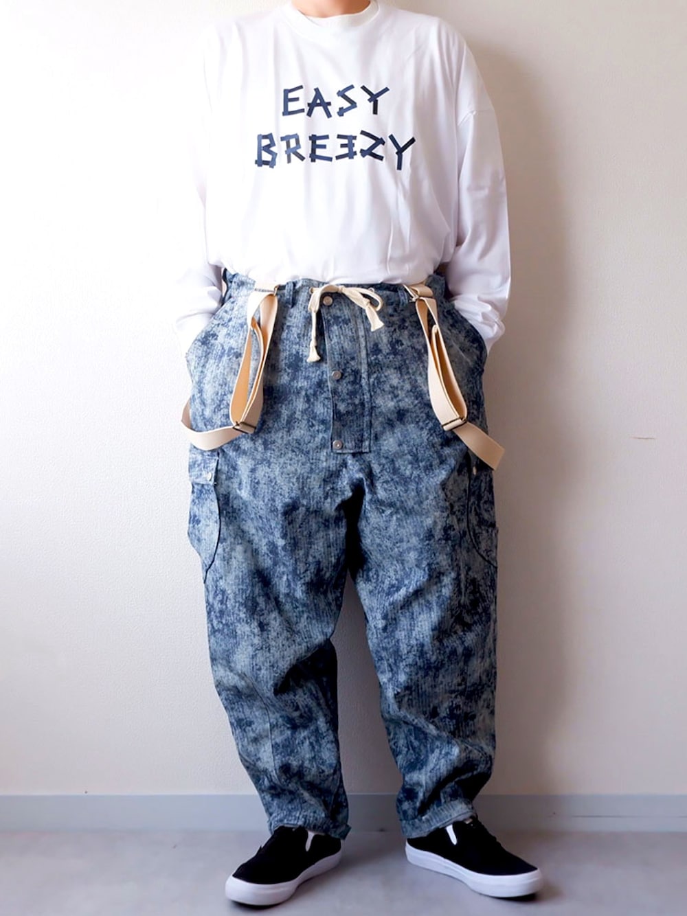 今日はmasterkeyのサロペットのショルダーベルトをタラっ〜と! ウエストは紐で結べるので、ミリタリーもののオーバーパンツのような感覚ではけます✨ 暑い一日になりそうですね。 では☀️