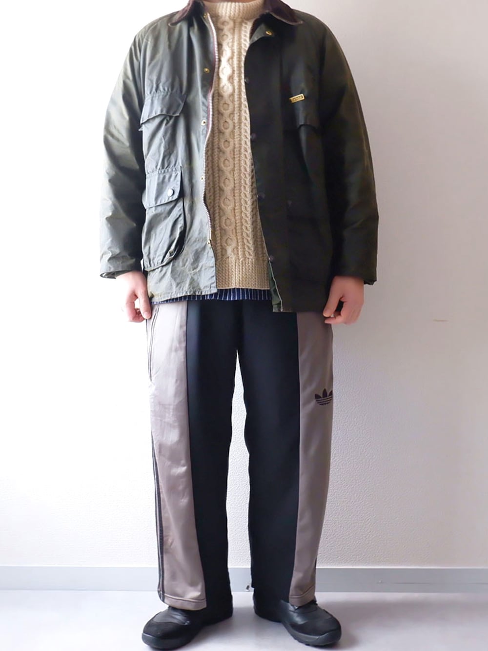 今日はBarbourにフィッシャーマンセーター、別注リメイクジャージトラウザー、パイロットブーツで! 本日が2020年最後の仕事💡 いつもと変わらず行っています🙋♂️