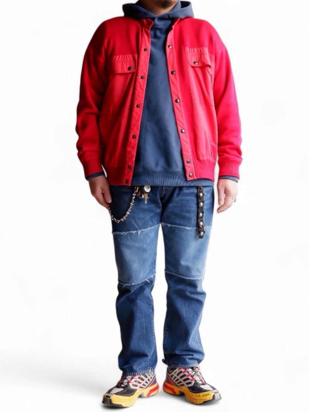 赤いスナップカーディガンはEuro vintage 青は全部ブルーナボイン アクセやベルトも全部ブルーナボイン 今日はこれ🎄