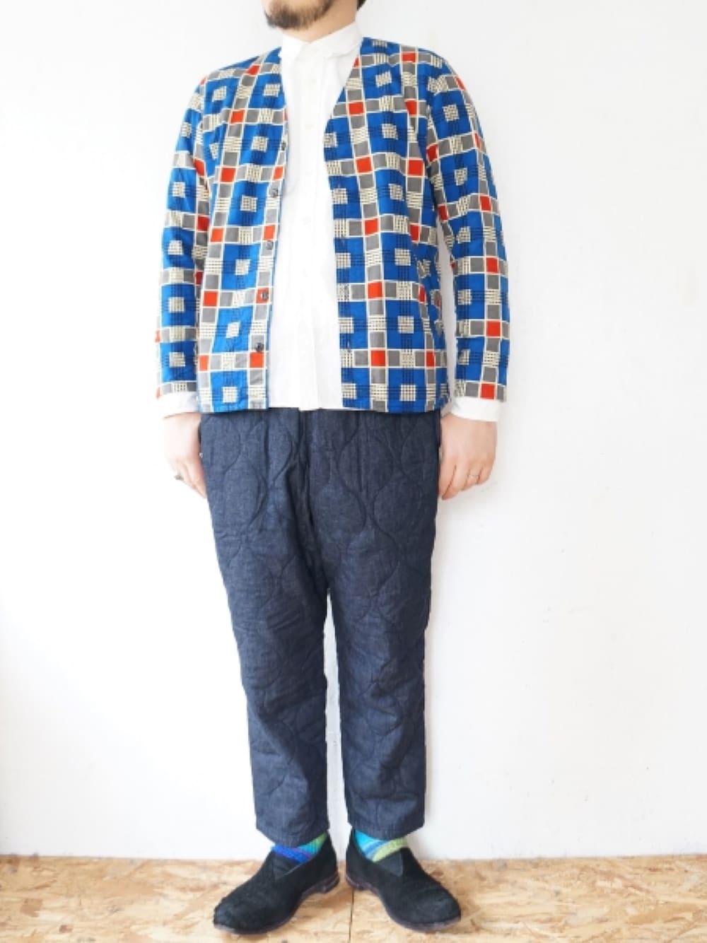 おはようございます♫ 今日は午前中はチビの運動会! 午後からいつも通り仕事、 3連休の2日目、お天気は怪しいですが、皆さん今日も一日お元気で😊 今日の午後からコーデは、柄カーディガン+白シャツ、デニムのキルティングパンツ+スウェードスリッポンを合わせました。 夕方から、ショップコートを羽織ります♫ そんなこんなの秋コーデになりました😄
