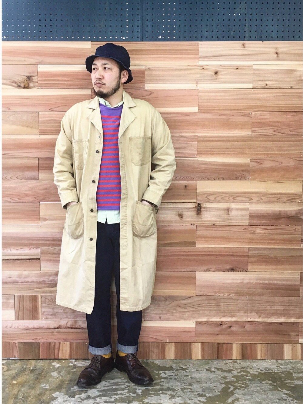 こんにちは!2月も中旬に差し迫り、あっという間に3月を迎えそうですね! 昨日は定休日を利用して、3月初旬からスタートを予定している新しい取組みの作業をやっておりました! ほぼ嫁さんが制作している事なんですが、床と壁が完成しました♪ 今日はそこでのワンショット♪ 今日はビンテージのショップコートきてます^ ^