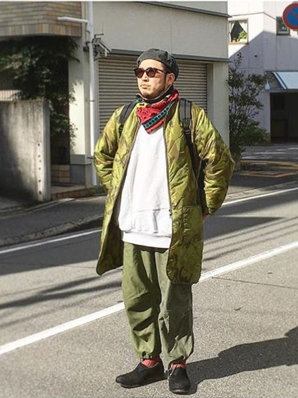 今日はミリタリーコーデ、 . . ロング丈のcamoジャケットはunitedcarr 、 . . スウェットはmasterkey のリバースウィーブのリメイクもの、 . . ネックウォーマーはnasngwam のusedニットのリメイクもの、 . . パンツはsunnysideup のM51とM65の2for1、 . . シューズはportaille のオーダーで、 . . バックパックはvisitorsfile . サングラスはnewman . . 今年はロング丈のモノ、出番が増えそうです✌️
