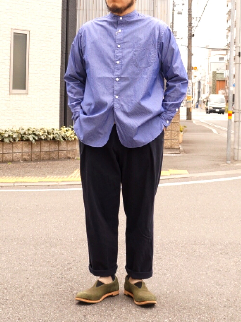 今日は春服、シンプルイズベスト! weac.のビッグマンシャツ、 soulive のハカマパンツ portaille のサイドゴア