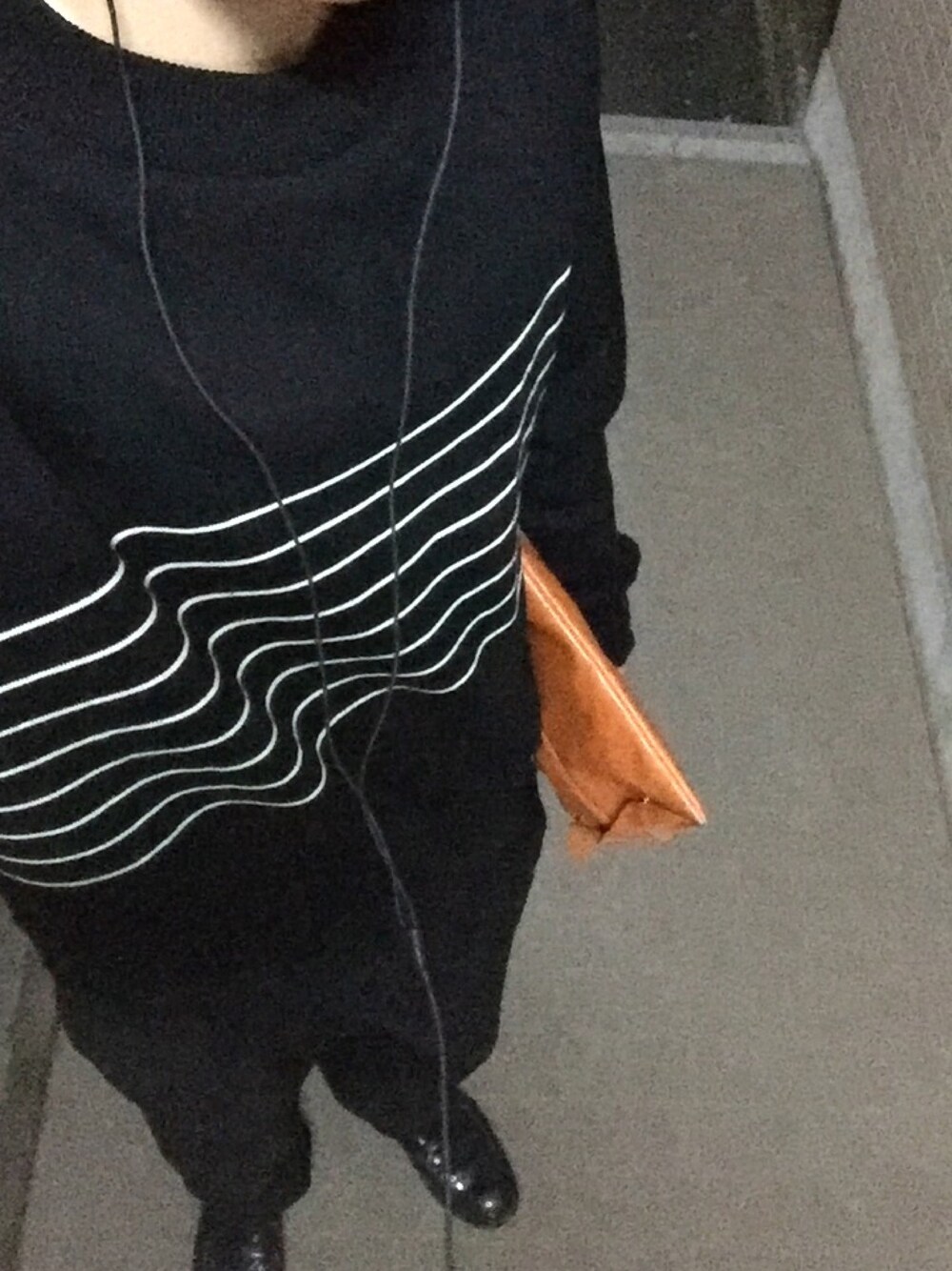 暗いところで撮ったうえに、真っ暗なスタイリングでまったく見えません。 明るいうちに撮ればよかったのですが、、、 安定の真っ黒のワントーンスタイル。