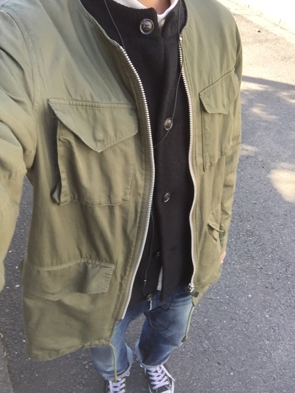 ikeのミリタリージャケット「NO COLLAR M-65 COAT / ノーカラー M-65 コート」を使ったコーディネート