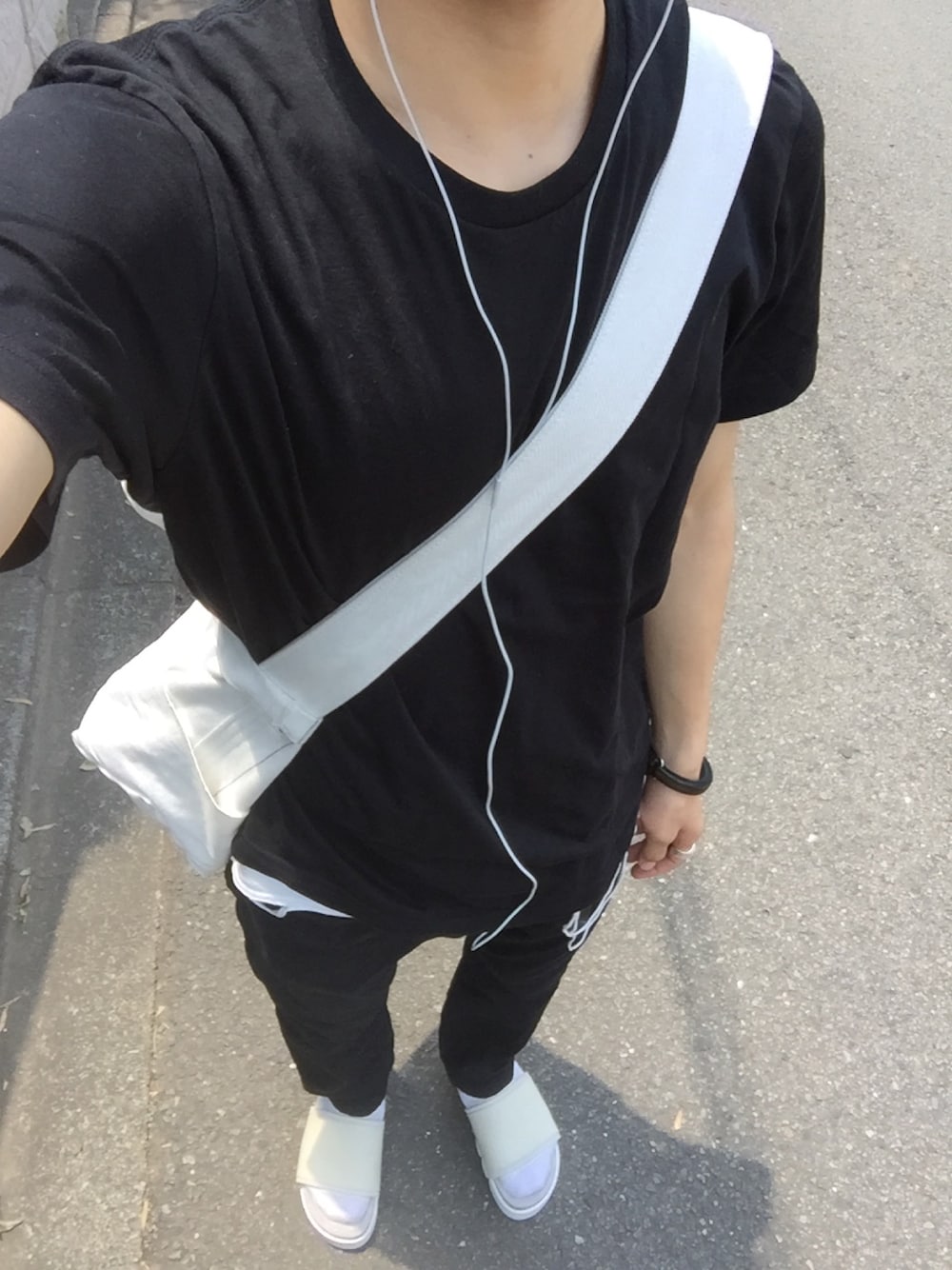 ずっと欲しかったカマボコ。 暑すぎるけど、靴擦れ怖いから靴下。 自転車乗りにくすぎだけど、意外と足大丈夫そう。 レイヤードもバッグも白にして、黒白だけスタイル。