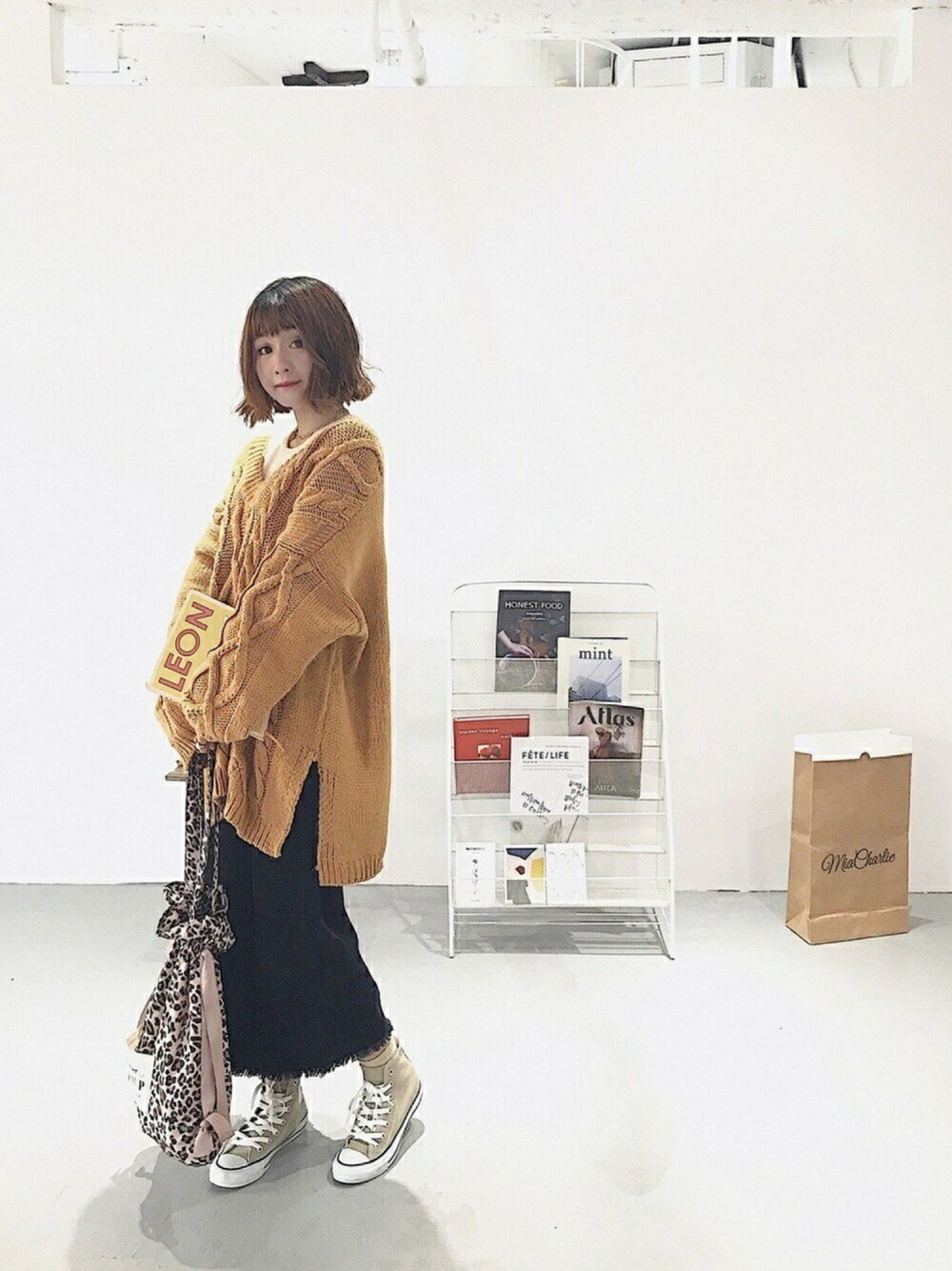 YokiChenのニット/セーター「アクリルケーブルBIGVニット」を使ったコーディネート