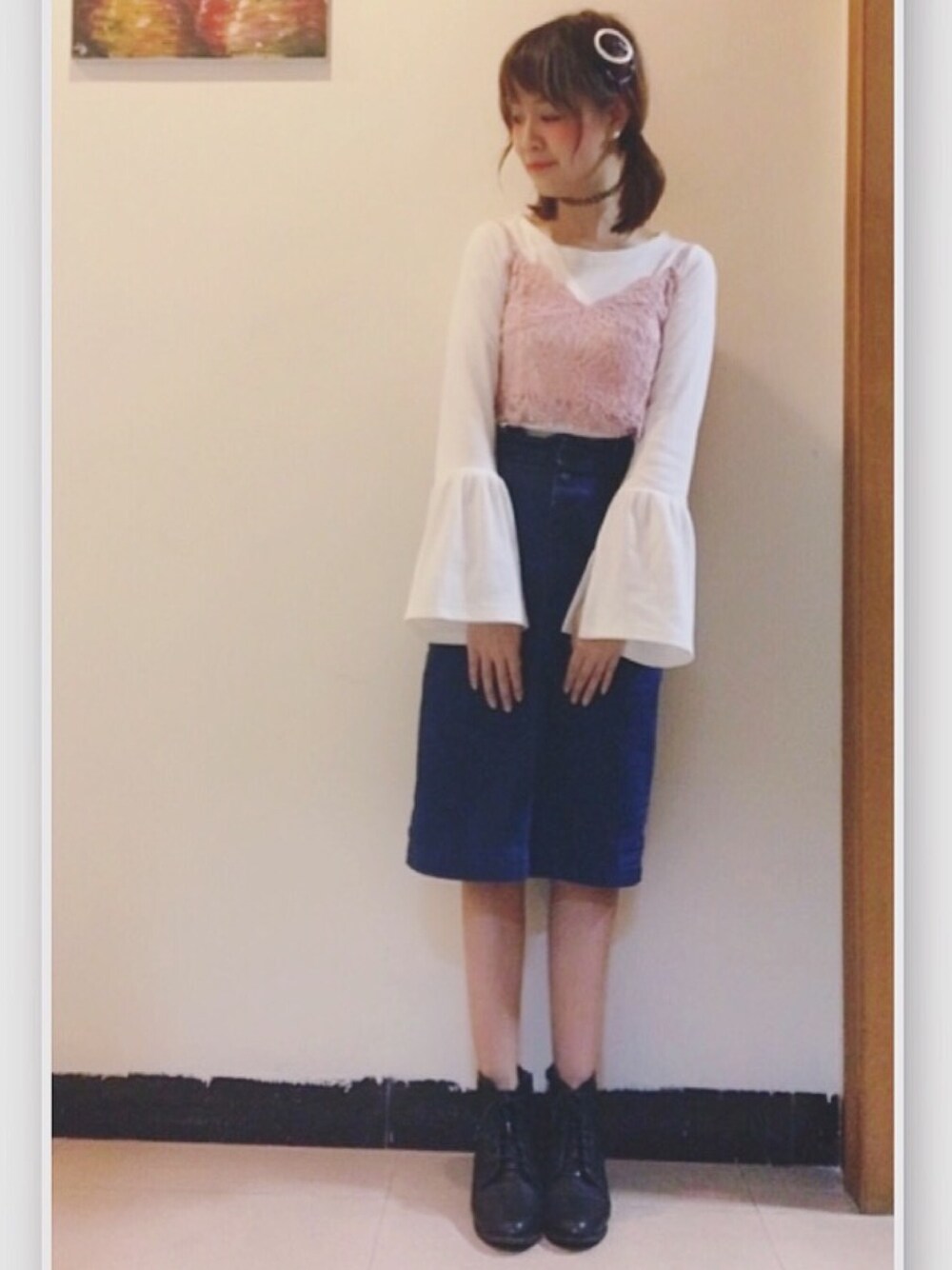 YokiChenのデニムスカート「ストレッチ入インディゴデニムタイトスカート」を使ったコーディネート