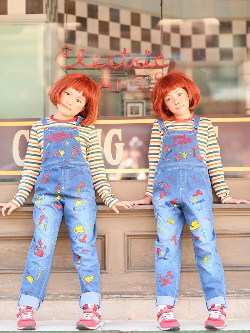 ハロウィンシリーズ🎃🌙👻 Wチャッキー🔪👦🔪 チャッキーコスプレも3年目に なりました😅 今年はオーバーオールに 手書きで柄を書きました!