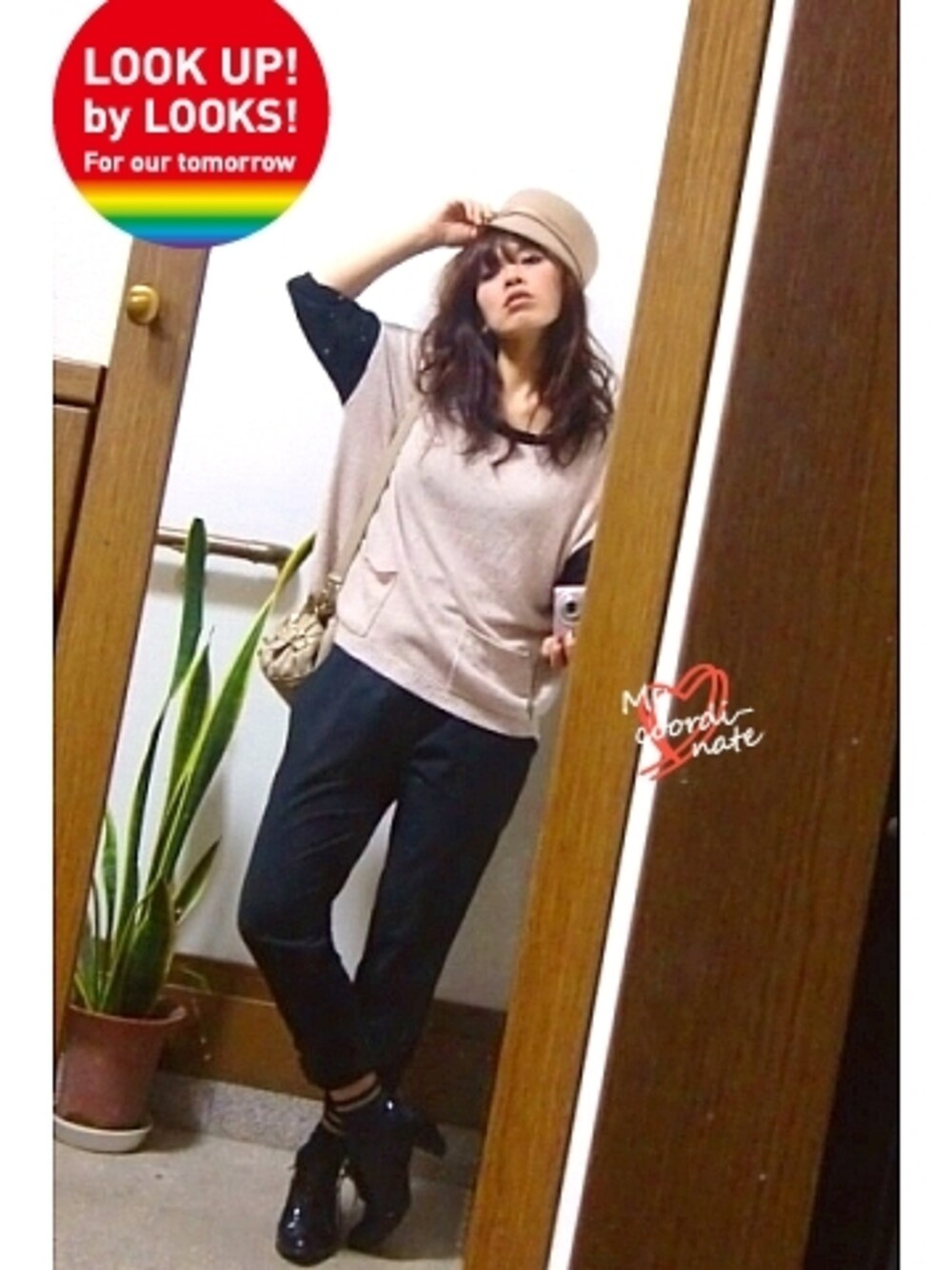 【fスタ】カシマシのレトロな小物使いスタイル ロイヤル帽をゆる~くかぶったレトロ×モードスタイル★ TOPSHOPのバイカラーニットは、あえて大きめサイズを選びました。 上がゆるいのでタックパンツは、脚がきれいに見えるものをチョイス。 黒×ベージュで統一しました~~。 TOPS:TOPSHOP BOTTOM:Hoochie Coochie BAG:VIOLAd'ORO