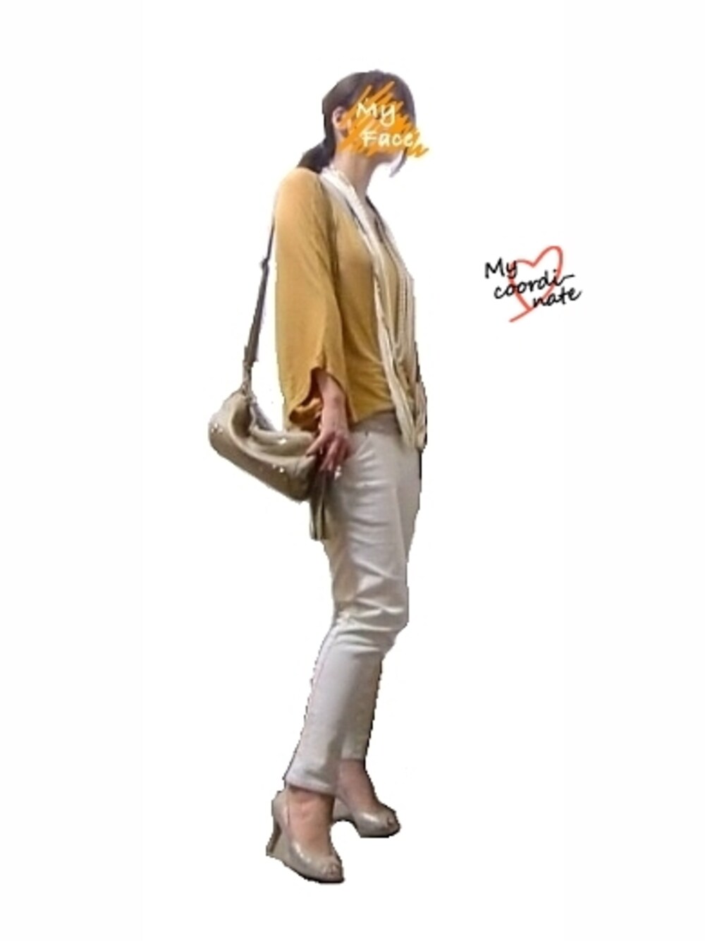 さらっと。 ネックレスがくっついてるこのストールが あまりにインパクトがあるので、 他はさらっと。 全体の色味も、うすーーく。