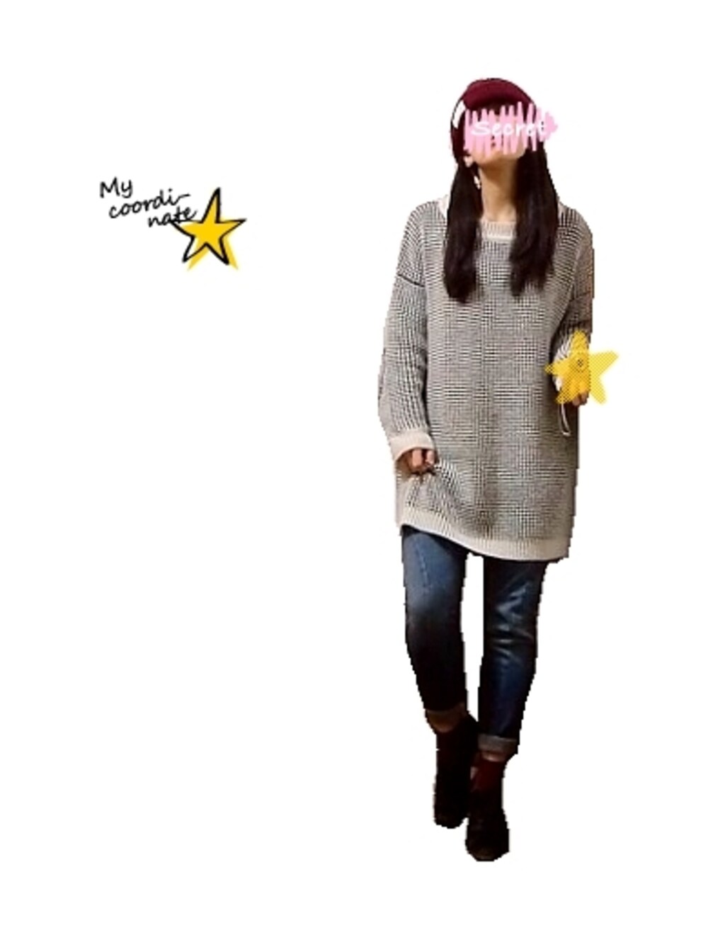 着回し。 最近買ったざっくりにっとの 着回し。 ニット帽、 靴下、 靴 を変えただけですが、 イメージ変わるー。 なんとなく、小人のイメージ★