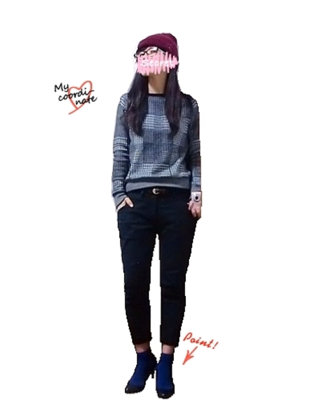小物遊び。 ストッキング生地の靴下、 これは丈感が絶妙! パンプスに合わせるのも新鮮でいいなと。 青い靴下。 小豆色のニット帽。 グリーン×茶色のダテメガネ。 シンプルなコーデの時は 小物でカラーを取り入れて遊ぶのが好き★