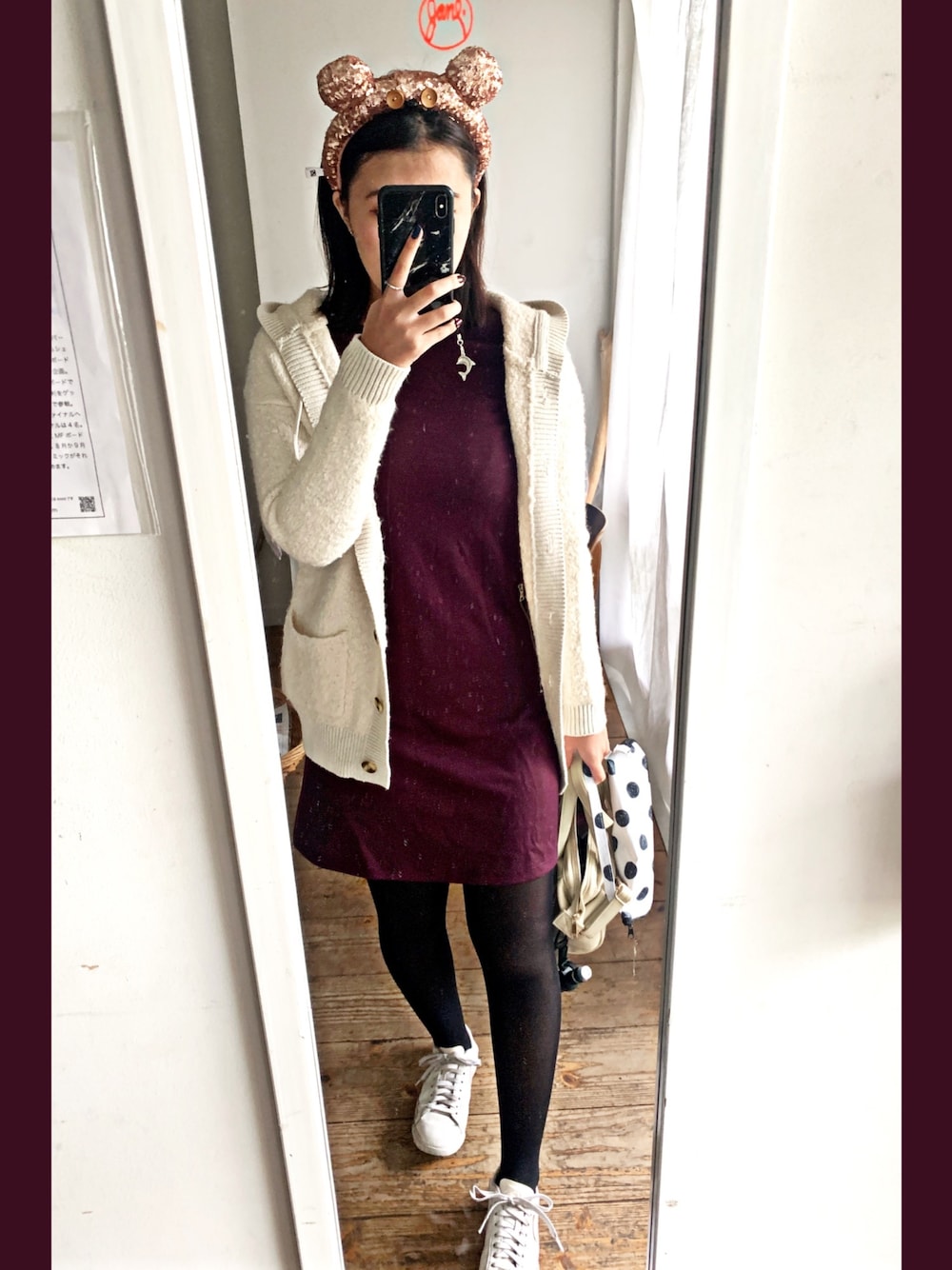 キラキラのティムのカチューシャに合うコーデにしてみました☺️今日は寒かったなぁ( ¨̮ )