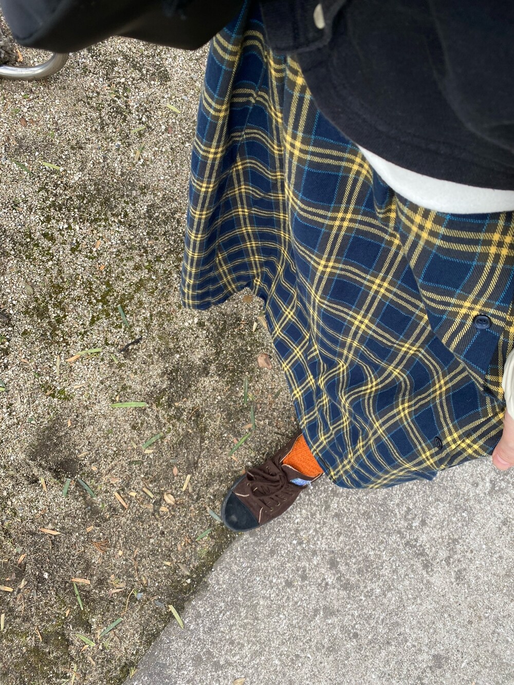 2021.1.30.sat とってもガーリーな気分だった。 チェックが好きです。 足元のオレンジ×ブラウンの配合が良き。 結果、ごちゃ混ぜ。