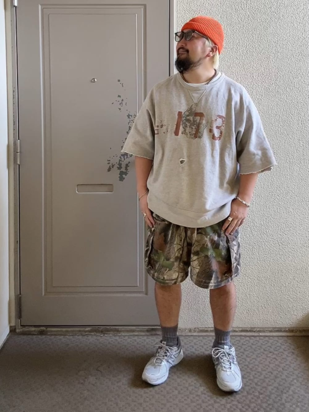 古着屋で一目惚れしたRalph Laurenの袖カットオフスウェットをフル活用したコーデ✨2XLのサイズ感ですが丈が長すぎないのでかなりいいです👍Tシャツに飽きたらカットオフスウェットおすすめかも!