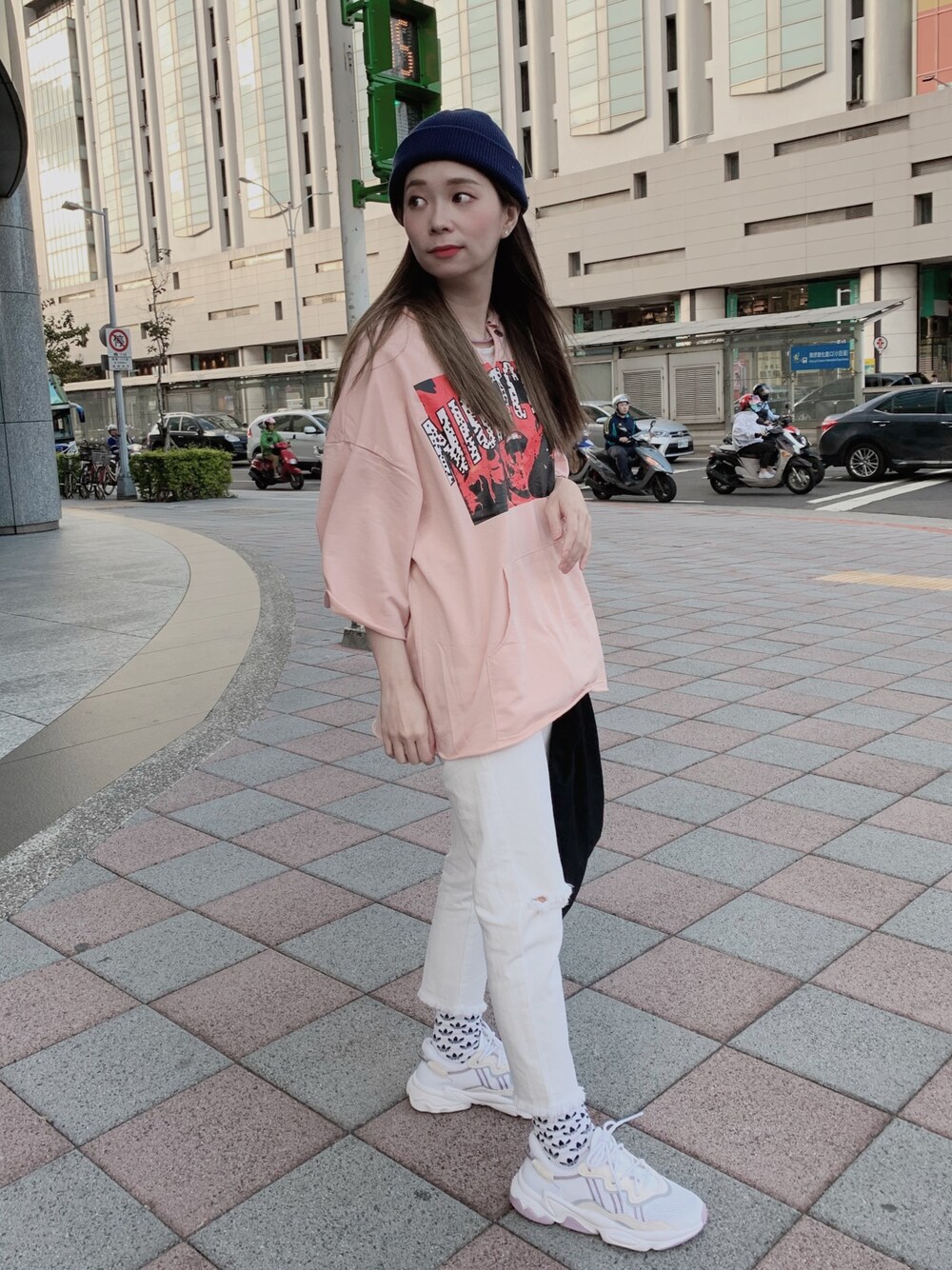 ホワイト系のスニーカー、ホワイト系のソックス/靴下を着用したレディースの秋コーディネートの1枚目の写真