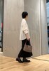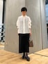 先日の仕事着~ トップスは FORK&SPOON ボクシーシアーシャツ DF45-23V159 FORK&SPOONにしては短め丈のシャツが新鮮で、シャツホリックの私は勿論購入。 短めと言っても伸長150㎝だとヒップにかぶる程度の長さがあり、おへそ出る!みたいな短さではないのでご安心下さい。 麻混の風合いと、キュプラとナイロンからくる光沢感で雰囲気のある1枚です。 写真の通り透け感がしっかりあるのでインナーは必須。 お洗濯後伸ばして吊り干ししていただくと写真の風合い。アイロン無しでさっと着られるのでめちゃ重宝しています◎ 身長150㎝で袖丈手の甲隠れる程度(写真4枚目)。長袖ですが軽くさらっとした生地なので日除けにもおすすめです。 スカートは FORK&SPOON idealstretchリネンブレンドスカート DF45-25V107 ” FORK&SPOONが開発した、とにかく伸縮性に優れたオリジナル素材"ideal stretch(アイディアルストレッチ)"を使用。 ” というだけあり、びゅんびゅん伸びつつヨレないスーパー生地のスカートです。昨年の秋のideal stretchシリーズがめちゃ良かったのでこちらも買いました~ やっぱり履きやすい!足を出来るだけ出したくない民なので深すぎないスリットも有難いんですよねえ(写真4枚目)。 身長150cmでサイズ1を着用。写真1〜3枚目はベルトで少し上げて、4,5枚目はベルト無しで履いています。 ベーシックなIラインのスカートなので合わせ次第で綺麗目にもカジュアルにも。 是非店舗で履き心地お試し下さい〇 バッグは MARCO BIANCHINI ワンハンドル2WAYショルダーバッグ DW46-24028 この絶妙なカラーと落ち着いたトーンのゴールド金具が素敵過ぎて持ってみました。 ハンド用とショルダー用の2タイプのストラップが付属しているので、シーンごとに雰囲気/持ち方を変えて使っていただけます◎ 秋冬、革小物欲しくなりますね~ トップスのシャツのインナーに 『UR TECH』キャミソール PL33-21N002 を着ています。 いまとってもお買い得になっているので商品ページ是非ご覧下さい〇 伸縮性もありつつしっかり生地なので、華奢な方でなければ低身長でもMサイズで大丈夫だと個人的には思います。 肩のストラップもしっかりしていて存在感があるので、細いストラップがお好きな方はよくよくご検討下さい。 しっかり生地なので今のところヨレ知らずです! 足元は私物のHARUTAコインローファー with靴下屋さんの靴下 シャツホリックがまたシャツを買いました、な仕事着でした~