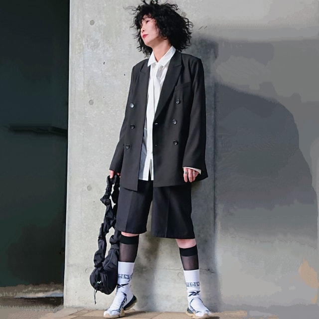 パーマ+ピークドラペルW前JK+ショーツ+ネクタイシャツ